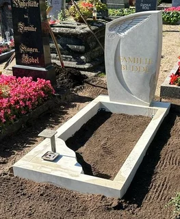 -Neumontage von eingesunkenen Grabanlagen auf dem Friedhof